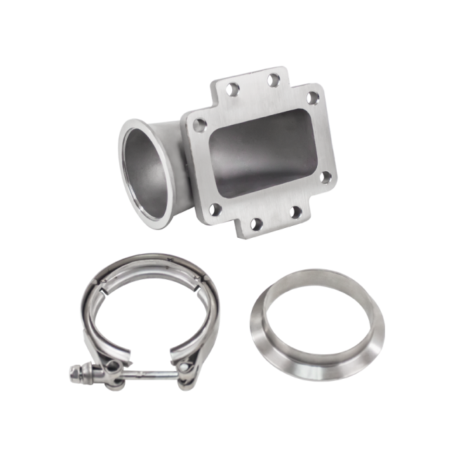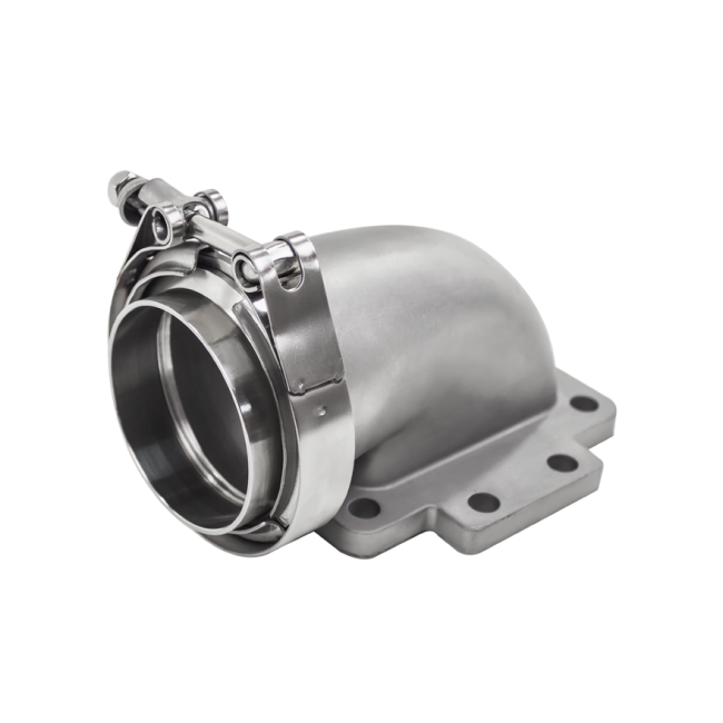 304 Stainless Steel Cast and Machined Adapter, with Tight Radius. Works for Many Turbo Applications.