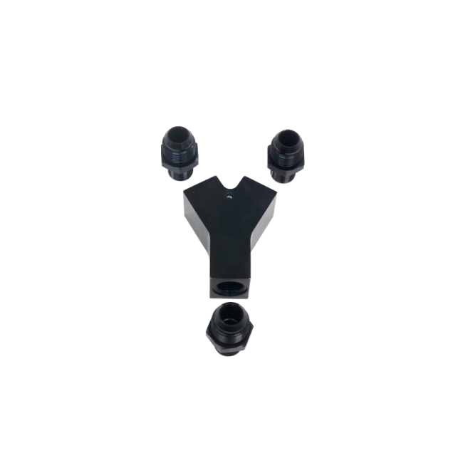 Aluminum Oil Y-Block, 3 Ports, All AN8 Fitting, For Oil or Fuel Applications